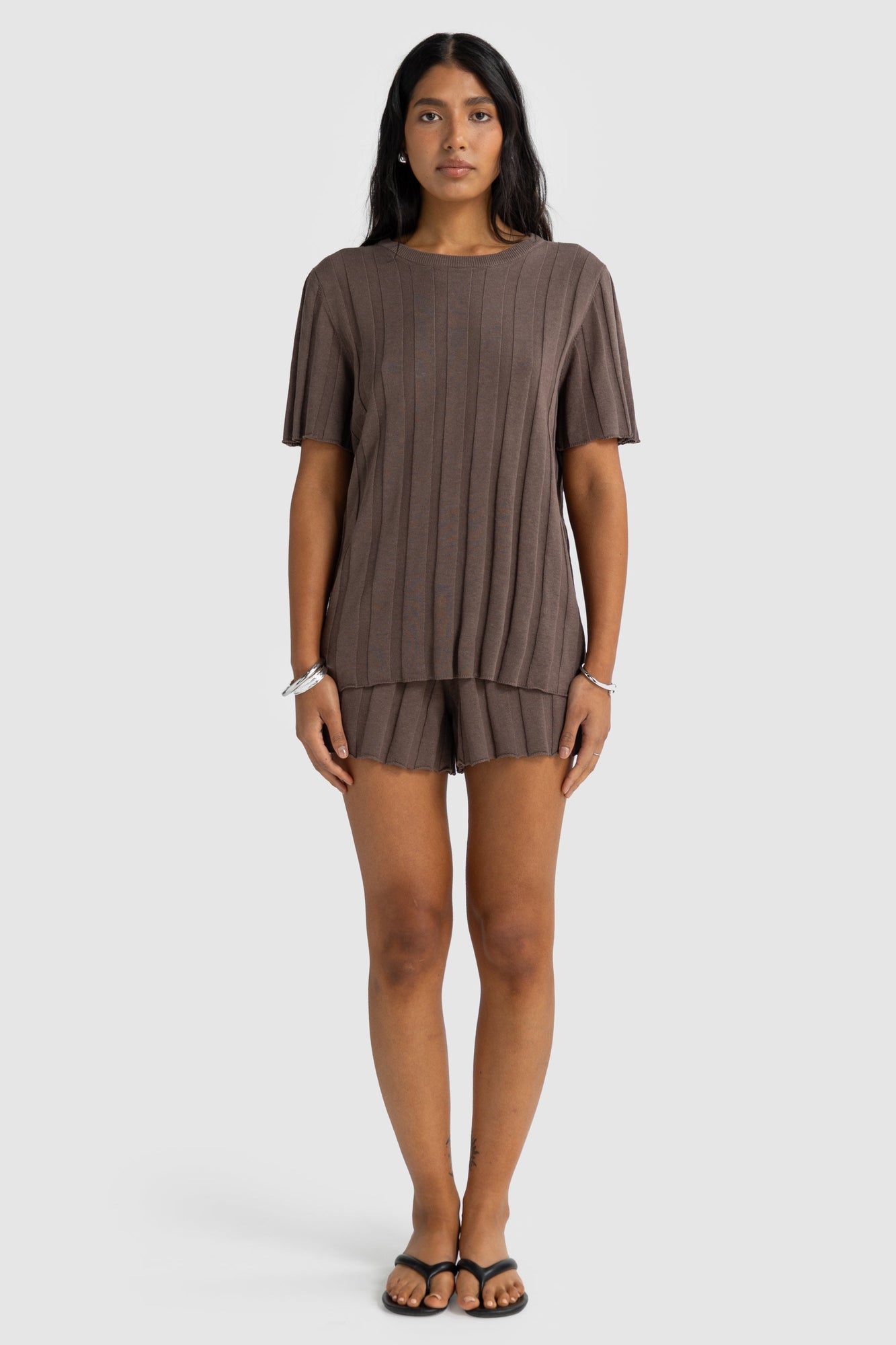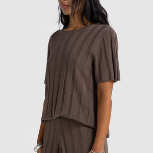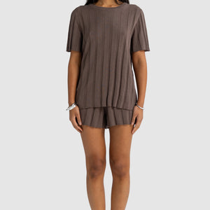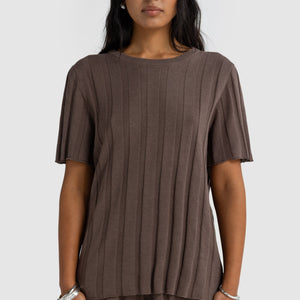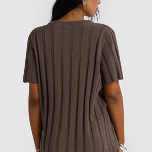 Amara Relaxed Knit T Shirt | Espresso
