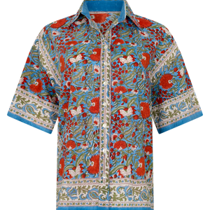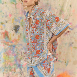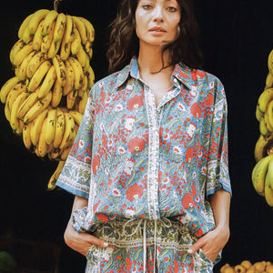 A breezy, boxy shirt soaked in vintage scarf nostalgia.