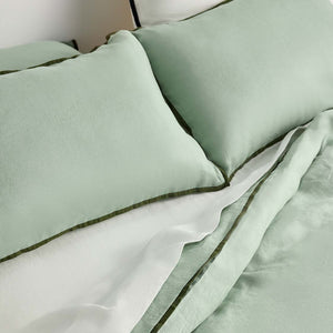 Make the bed. Make it bold. These Linen Pillowcases in Spearmint are crafted from 100% European flax linen that’s luxuriously soft, breathable and designed to last.