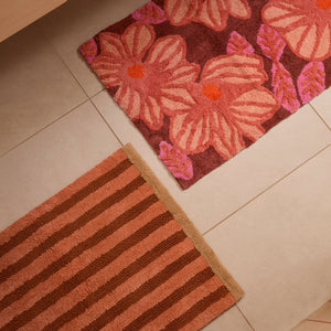 A plush cotton bath mat with tonal-pink florals. Soft underfoot, grounding, and perfect for everyday use.