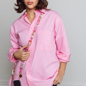Bright pink, light pink and creamy latte links create an item that is optimistic and alive, just like the works of New Zealand artist Piera McArthur.