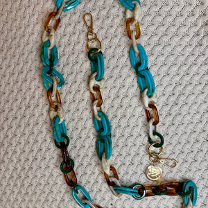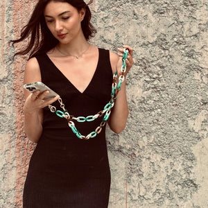 This resin link phonechain is made of high quality varied resin links, with sturdy stainless steel hardware. Designed with our collaborators in Europe, made for Aotearoa. The clasp also allows keys or swipe cards to be attached elegantly to your phone chain.