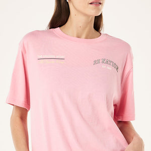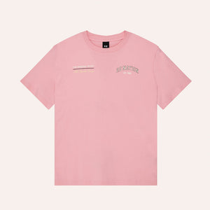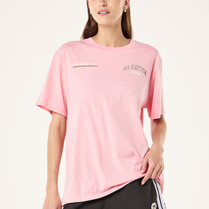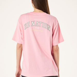The Base Tee in Candy Pink is made from a 100% medium-heavy cotton jersey. This relaxed fit short sleeve tee features a ribbed crew neck and a custom P.E Nation seasonal graphic print on front and back. Style this tee with a track pant, leggings or bike short for laid back days.