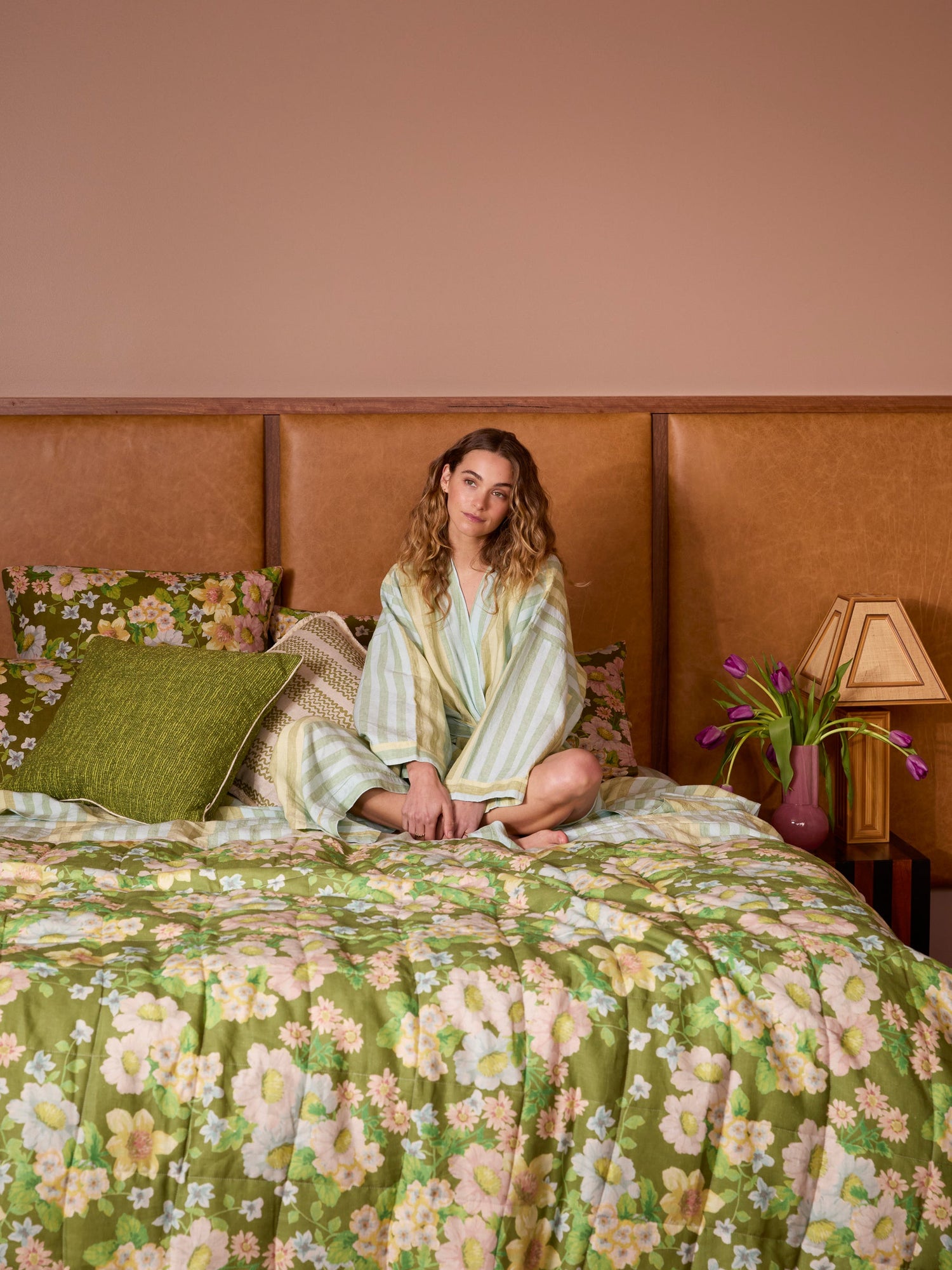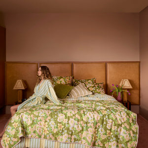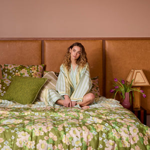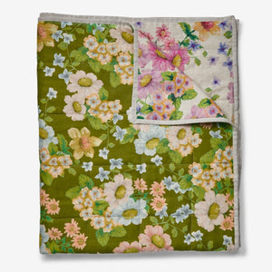 This reversible throw offers two looks in one - olive green florals on one side, multi-colour on the other. The quilted linen adds warmth, softness, and styling flexibility to your bedroom.