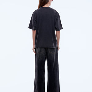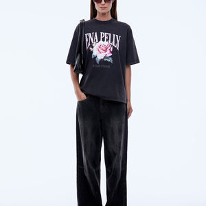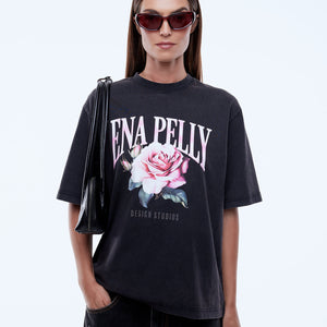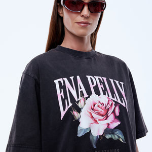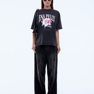 The Ena Pelly Rose Tee is made from soft cotton jersey with a boxy, relaxed shape and drop shoulders in vintage black. Finished with a feminine floral graphic and vintage wash, it delivers lived-in ease with expressive attitude.