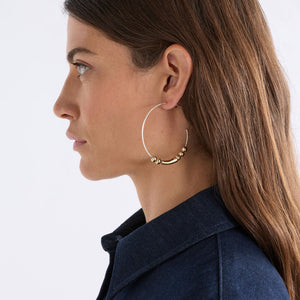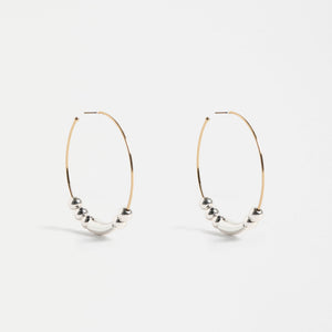 The Enna Large Hoop Earrings feature an open-ended hoop with contrast mixed metal beads moving freely along the hoop. This modern and unique design is sure to add an elevated edge to your day and evening outfits. Lightweight design, perfect for day-to-night wear.
