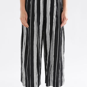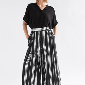 The Reza Pants are a high-rise pant featuring a wide-leg silhouette in 100% organic cotton. They are pull-on style with a wide elasticated waistband for a comfortable and easy fit. These pants are finished with stitched down tucks from the waist adding extra volume in the leg.