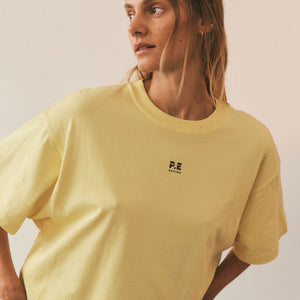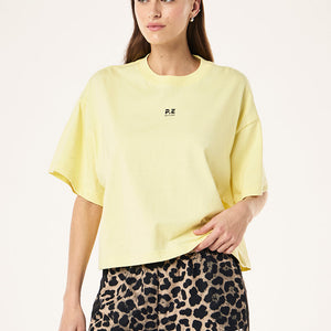 The Superfine Oversized Tee in Lemonade is made from 100% lush heavyweight cotton, this garment dyed tee features a relaxed oversized boxy silhouette and a P.E Nation graphic on front and back. The ideal everyday piece, style yours with shorts, pants or leggings.