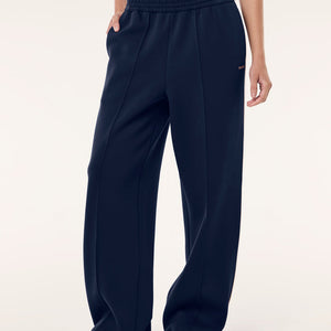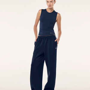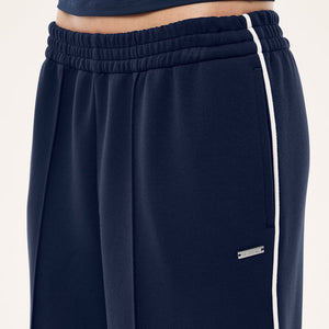 The Triumph Pant in Dark Navy is crafted from luxe heavyweight textured jersey, delivering elevated structure with an off-duty edge. Made for gym mornings, mobility work and cooler-day layering, it's designed to move beyond the studio. Cut in a mid-rise relaxed silhouette, it features contrast piping, welt pockets and a silver branded badge for a sharp, refined finish.