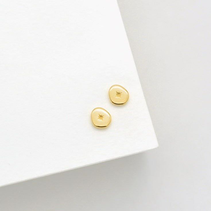 Our Vega Stud Earrings feature an engraved star design. They are crafted in nickel-free sterling silver with a polished finish.